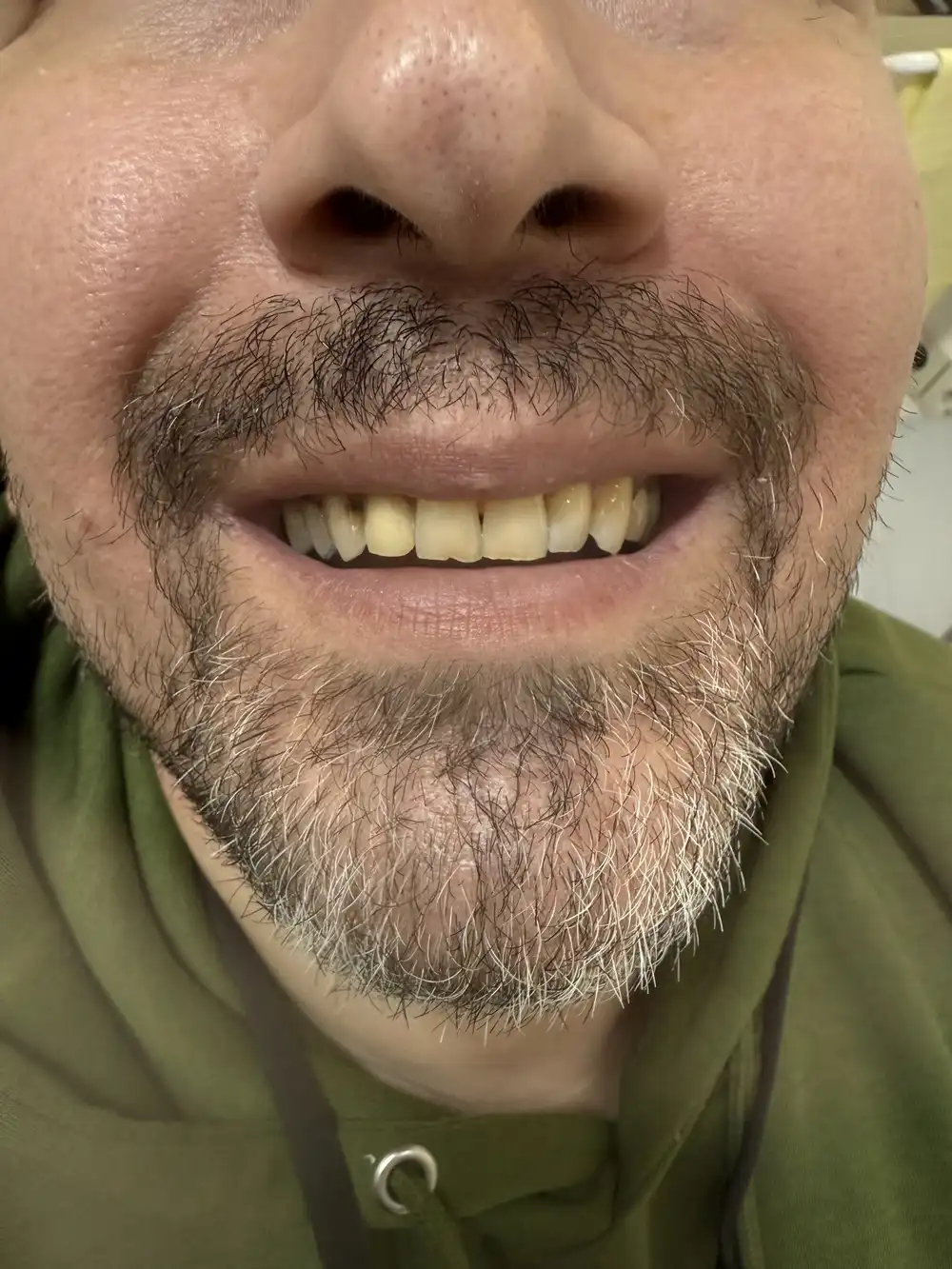 تعویض دندان قبلی با دندان جدید به دلیل شلی و ظاهر بد با دندان کامل بالا و پایین و تست محکمی